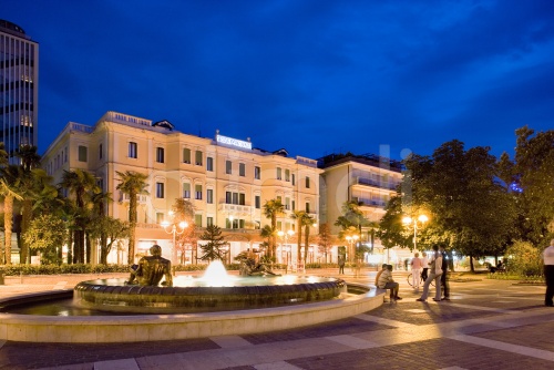 Illuminated fountain, Abano Terme, Euganean Hills, Veneto, Italy, Europe