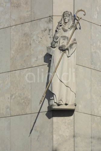 Hildegard von Bingen with Crosier statue, at the food market in Bingen, Rhineland-Palatinate, Germany