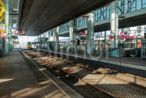 Empty train platform in the Gent-Sint-Pieters railway station in Ghent during NMBS-SNCB public transportation strike, East Flanders, Belgium