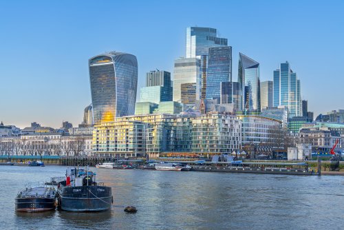 Skyline showing commercial skyscrapers 20 Fenchurch Street, Leadenhall Building and 22 Bishopsgate in City of London financial district, England, UK