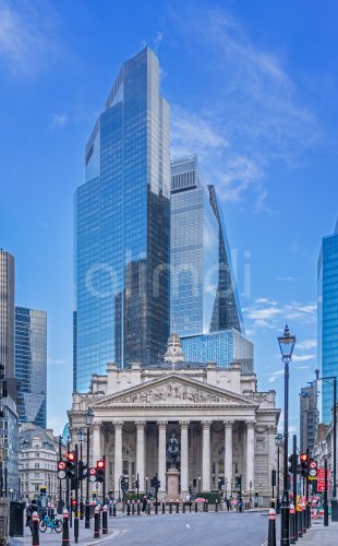 16th century neoclassical Royal Exchange, 8 and 22 Bishopsgate, commercial skyscrapers in the financial district of the City of London, England, UK