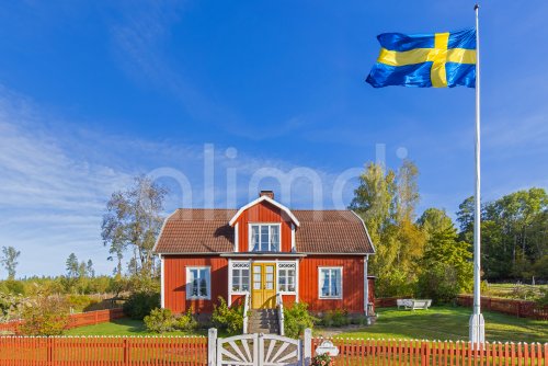 Katthult, red wooden farm house with fence from Astrid Lindgren's tales about Emil of Lönneberga at Gibberyd near Rumskulla, Vimmerby, Småland, Sweden