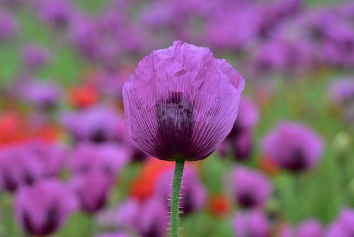 Field with poppies, red poppy (Papaver somniferum) and pink poppy, Bavaria, Germany, Europe
