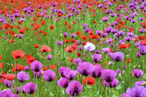 Field with poppies, red poppy (Papaver somniferum) and pink poppy, Bavaria, Germany, Europe