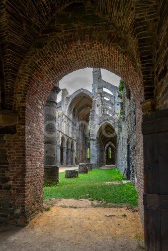 Church ruins at the 13th century Abbaye de Villers, former Cistercian abbey in the town Villers-la-Ville, Walloon Brabant, Belgium