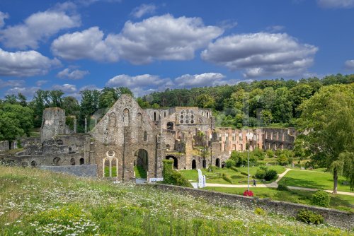 Ruins of 13th century Abbaye de Villers, former Cistercian abbey in the town Villers-la-Ville, Walloon Brabant, Belgium