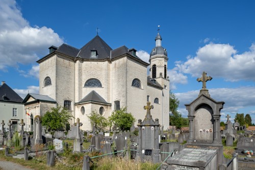 18th century Neo-classical abbey church and cemetery at Abdij van Vlierbeek, former Benedictine abbey, Kessel-Lo near Leuven, Flemish Brabant, Belgium