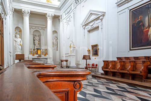 Altar and choir stalls of the Church of Our Lady at Abdij van Vlierbeek, former Benedictine abbey at Kessel-Lo near Leuven, Flemish Brabant, Belgium