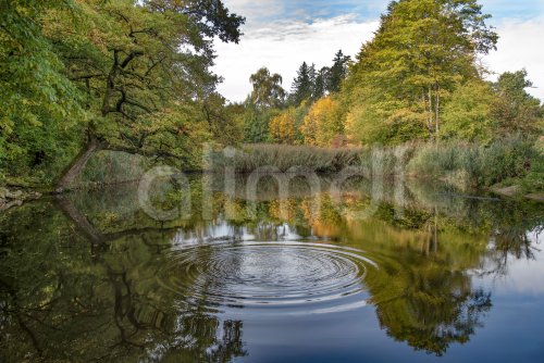 Pond at the edge of an autumnally colorful forest, Bavaria, Germany, Europe