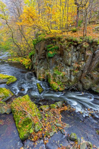 River Bode running through forest showing autumn colours / fall colors at Nature reserve Bode Valley in the Harz Mountains, Saxony-Anhalt, Germany