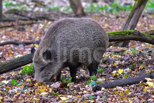 Wild boar (Sus scrofa), also called wild boar, foraging in a forest clearing in Bavaria, Germany, Europe
