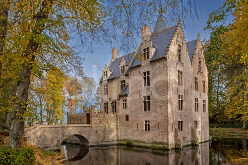 Kasteel Beauvoorde, 17th century moated castle in Renaissance style in the village Wulveringem in autumn / fall, Veurne, West Flanders, Belgium