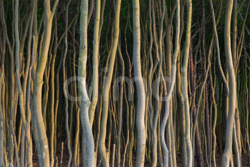 Beech trees with twisted trunks at Darß / Darss west coast, Fischland-Darß-Zingst, Western Pomerania Lagoon Area NP, Mecklenburg-Vorpommern, Germany