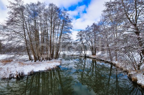 Winter floodplain landscape along the Schmutter river in the Augsburg Western Woods Nature Park, Bavaria, Germany, Europe