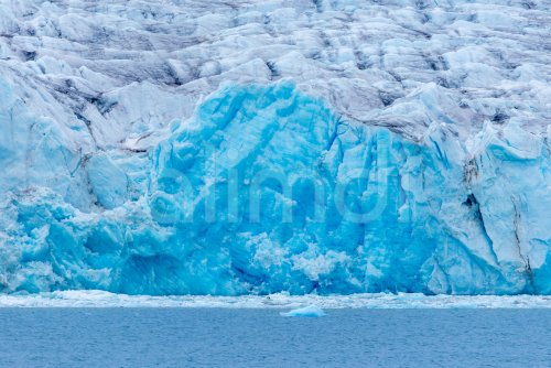 Lilliehöökbreen glacier in summer debouching into Lilliehöök Fjord / Lilliehöökfjorden, branch of Krossfjorden in Albert I Land, Spitsbergen, Svalbard