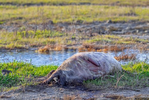 Rotten seal carcass for Dood doet Leven, project by Zeeuwse Landschap placing carcasses of dead animals to maintain biodiversity, Zeeland, Netherlands