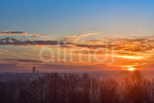Sunrise in winter over Augsburg, Bavaria, Germany, Europe