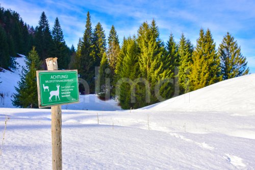 Information sign in a wildlife reserve in a valley in the Alps in Austria, Europe