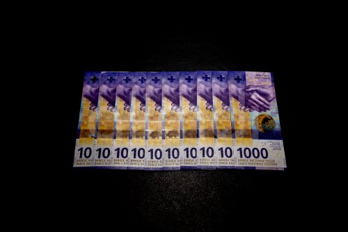 10. 000 in Swiss Franc Banknote on Table in Switzerland.