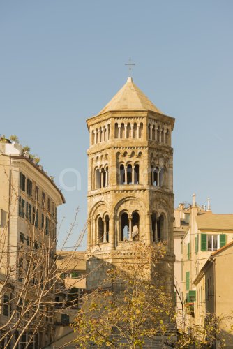 Church Tower in a Sunny Day in Genoa, Liguria in Italy.