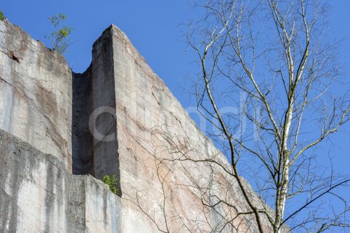 Abandoned red marble quarry Carrière de Beauchâteau at Senzeilles, Cerfontaine, province of Namur, Belgian Ardennes, Wallonia, Belgium