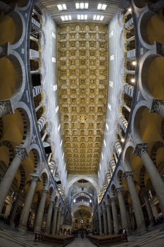 Interior view of the cathedral shot with a fisheye lens, Piazza Dei Miracoli square, Pisa, Tuscany, Italy, Europe