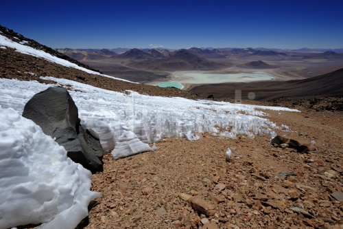 Laguna Verde lagoon and the surrounding area with penitentes, Uyuni, Bolivia, South America