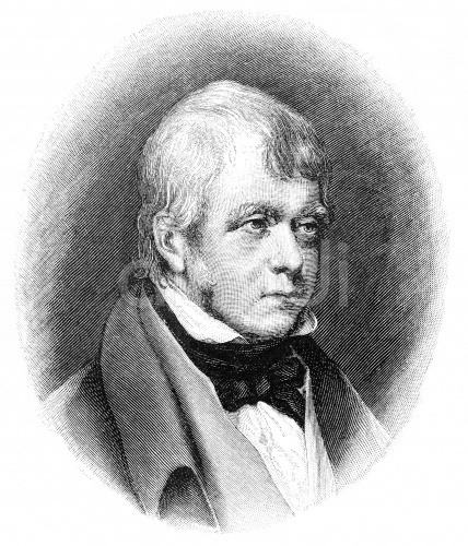 Historical illustration from the 19th Century, portrait of Sir Walter Scott, 1st Baronet of Abbotsford, 1771 - 1832, a Scottish poet and writer
