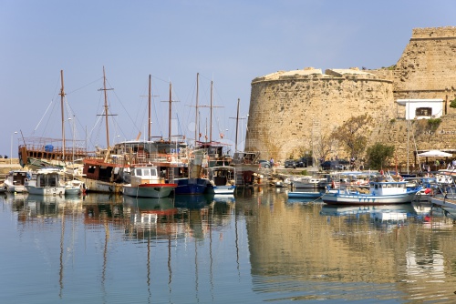 Fishing village, harbor, Byzantine castle, Girne, Keryneia, Cyprus, Greece, Europe
