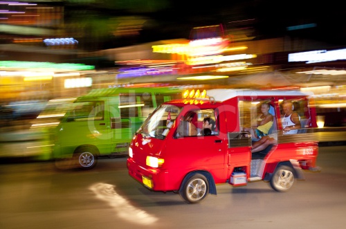 Tuk-tuks transporting passengers, Patong, Phuket Island, Southern Thailand, Thailand, Southeast Asia, Asia