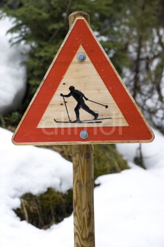 Traffic sign calling attention fo crossing cross-country skiers, Oslo, Norway, Europe