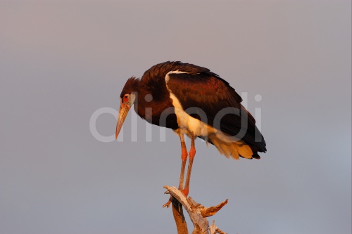 Abdim's Stork (Ciconia abdimii), adult on branch in evening light, Etosha, Namibia, Africa