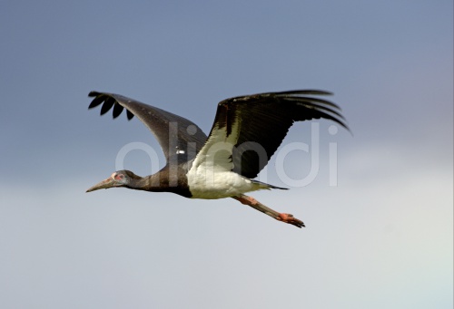 Abdim's Stork (Ciconia abdimii), adult, in flight, Masai Mara, Kenya, Africa