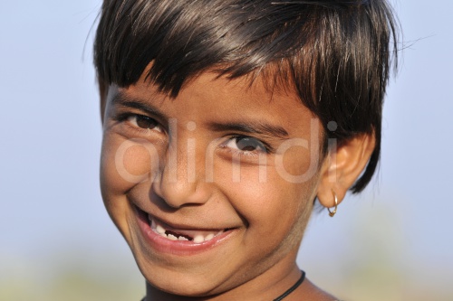 Girl with missing teeth, portrait, Orchha, Madhya Pradesh, northern India, India, Asia