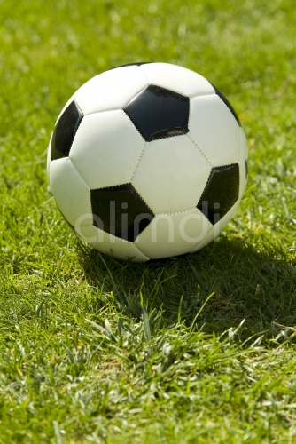 Football on a green lawn