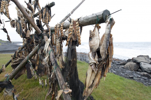 Cod on a drying rack, Iceland, Europe
