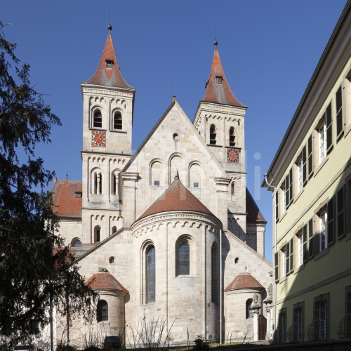 Basilica of St. Vitus, former collegiate church of St. Vitus, east facade and vestibule, Ellwangen an der Jagst, Baden-Wuerttemberg, Germany, Europe