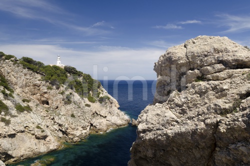 Rocks, Far de Capdebera lighthouse, Cala Ratjada, Majorca, Spain, Europe