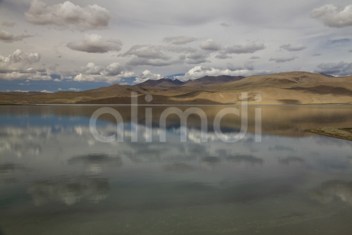 Tso Moriri, with mountains and the sky reflecting in the lake, Tsomoriri Wetland Conservation Reserve, Jammu and Kashmir, India, Asia