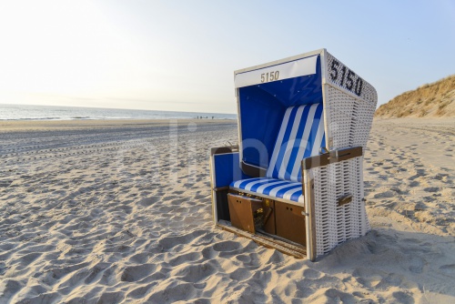 Roofed wicker beach chair on the beach, Rantum, Rantum, Sylt, North Frisian Islands, Schleswig-Holstein, Germany, Europe