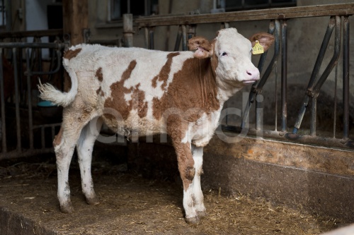 Calf in the barn, Bavaria, Germany, Europe