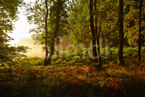Forest clearing in the early morning light, Montagnac-la-Crempse, Bergerac, Département Dordogne, Aquitaine, France, Europe