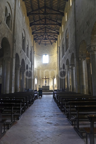 Nave, Abbey Church of Abbazia di Sant'Antimo, near Montalcino, Province of Siena, Tuscany, Italy, Europe