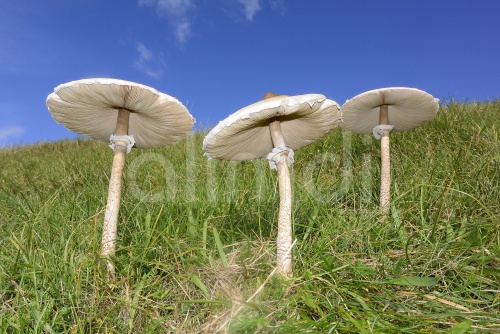 Parasol Mushrooms (Macrolepiota procera), edible mushrooms, Rømø, Denmark, Europe