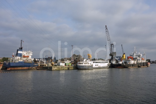 Old ships being dismantled to recycle scrap metal at Van Heyghen Recycling export terminal, port of Ghent, East Flanders, Belgium
