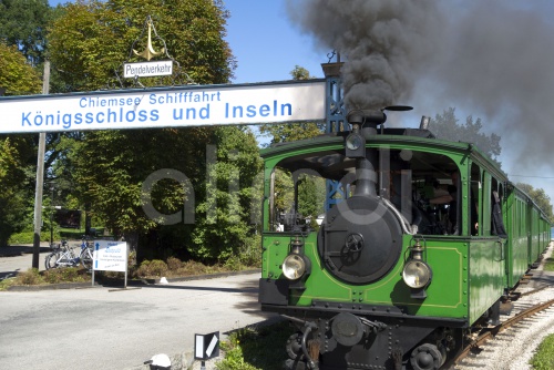 Chiemsee-Bahn tourist train, Chiemsee, Chiemgau, Upper Bavaria, Germany