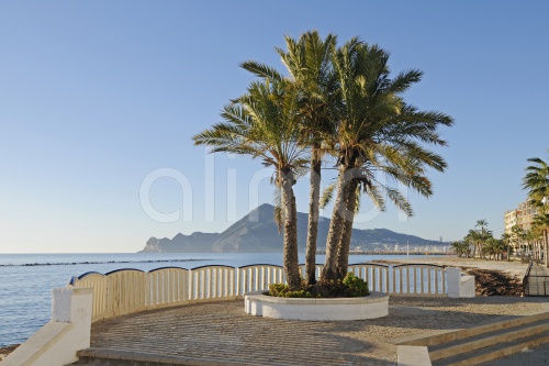 Palm trees on the beach promenade in the morning light, Altea, Costa Blanca, Province of Alicante, Spain