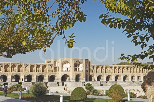 Pol-e Khadjou Bridge crossing the dry river of Zayandeh, Isfahan, Isfahan province, Persia, Iran