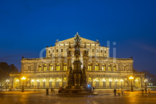 Semperoper opera house at night, UNESCO World Heritage Site, Elbe river, historic centre, Dresden, Saxony, Germany