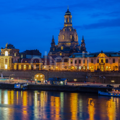Dresden Frauenkirche during the blue hour, UNESCO World Heritage Site, Elbe river, historic centre, Dresden, Saxony, Germany